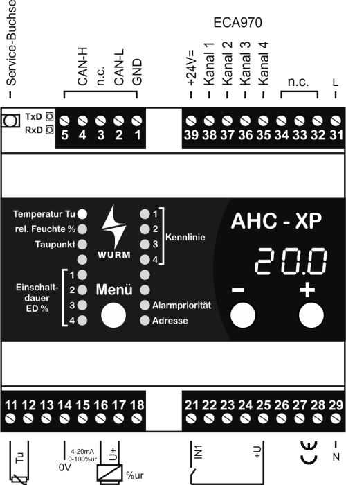 Raumtemperaturfühler und Feuchtesensor am Gerät anschließbar oder über CAN-Bus (TRH-XP, TRS)