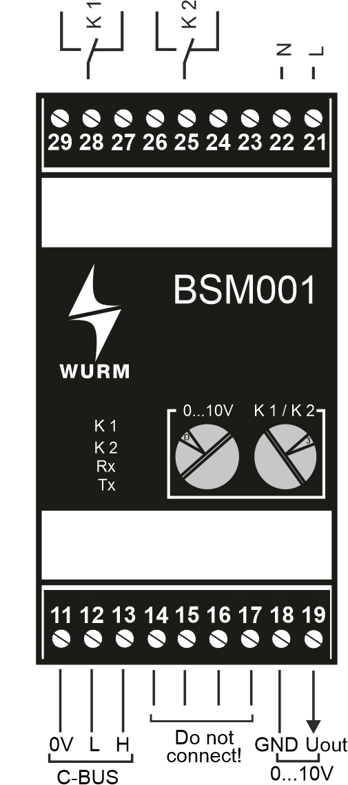 • Schaltsignale vom Wurm-CAN-Kommunikationsbus (C-BUS) über Drehschalter wählbar