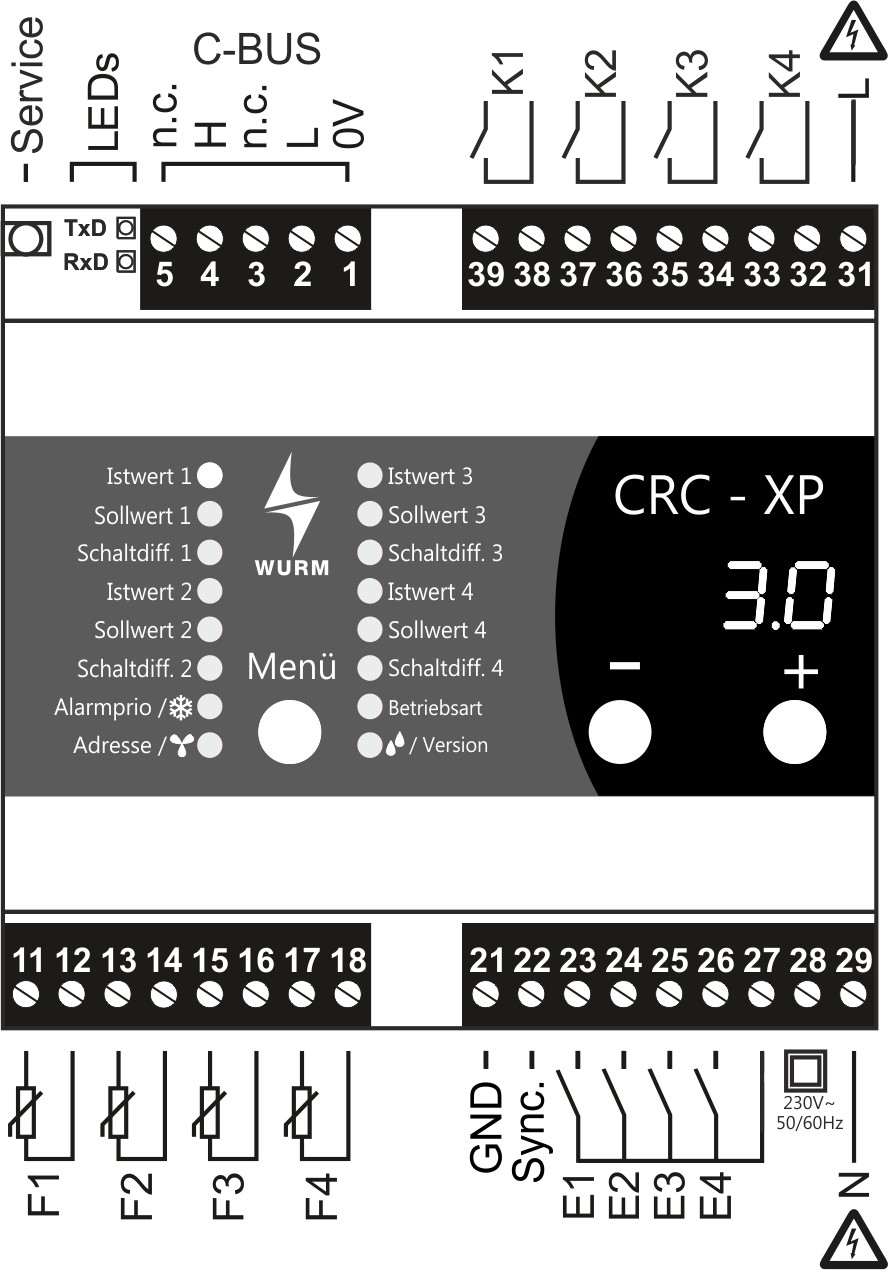 • Verbindung zum Wurm-System über Wurm-CAN-Kommunikationsbus (C-BUS) und FRIGODATA XP