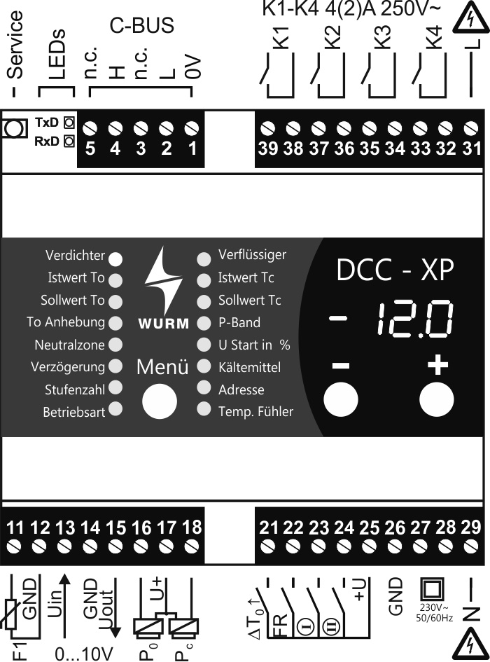 Verbindung zum Wurm-System über Wurm-CAN-Kommunikationsbus (C-BUS) und FRIGODATA XP