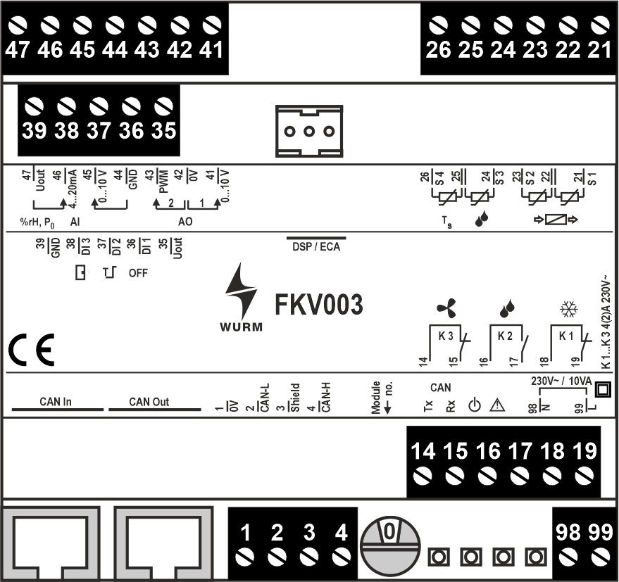 Verbindung zum Hauptmodul über Wurm-CAN-Feldbus (F-BUS)