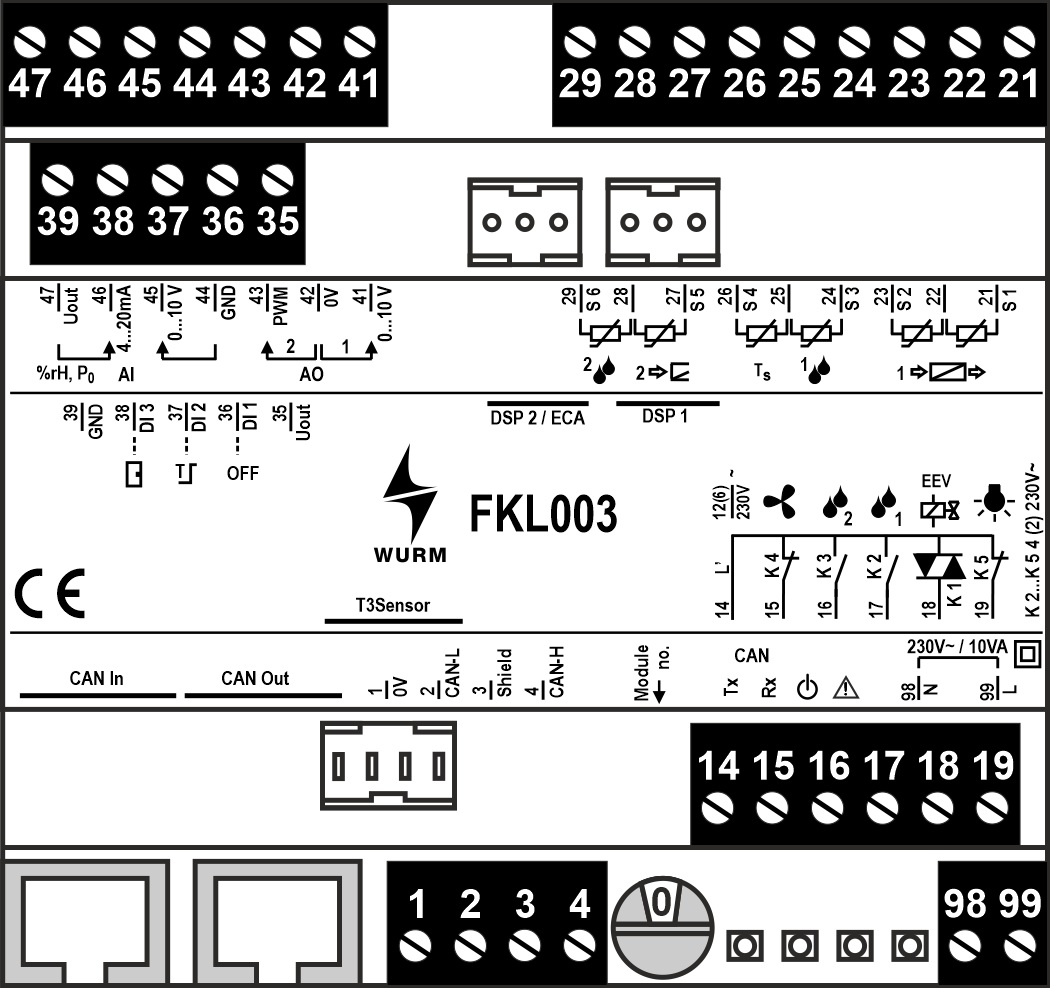 Verbindung zum Hauptmodul über Wurm-CAN-Feldbus (F-BUS)