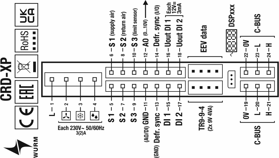 Verbindung zum Wurm-System über Wurm-CAN-Kommunikationsbus (C-BUS) und FRIGODATA XP