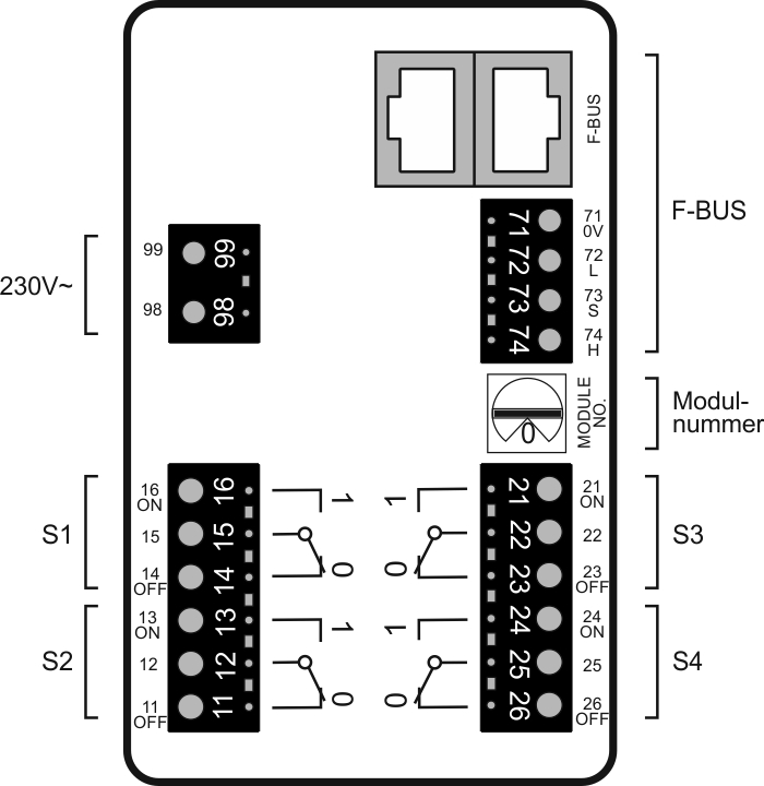 2 Schalterkarten je Hauptmodul HKS-G3/G4