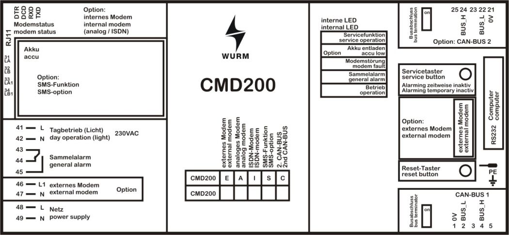 Handling von bis zu 16 universellen Ein-/Ausgangsmodulen FIO001B für zusätzliche Stör-/Betriebseingänge 230V~ und nach Prioritäten getrennte Alarmrelais