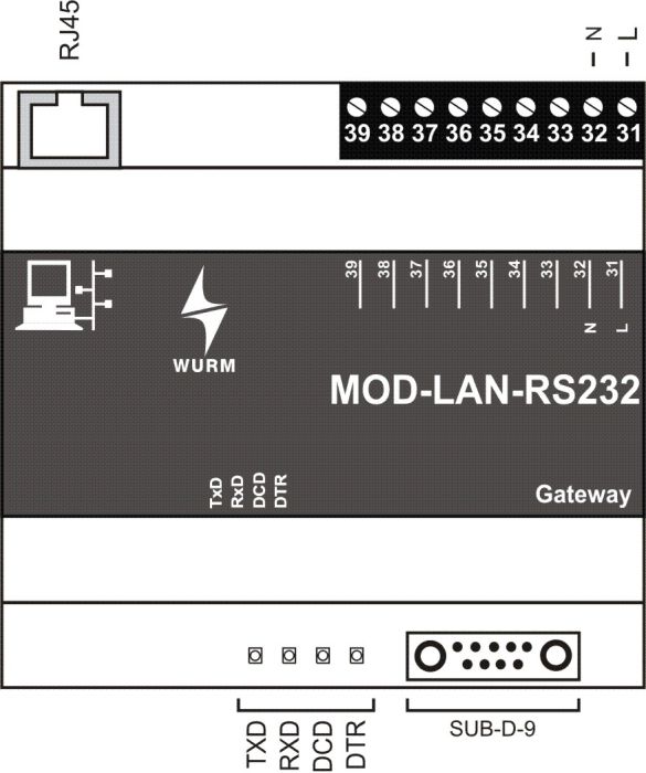 - RJ-45-Westernbuchse für Netzwerkanschluss mit 10MBit/s