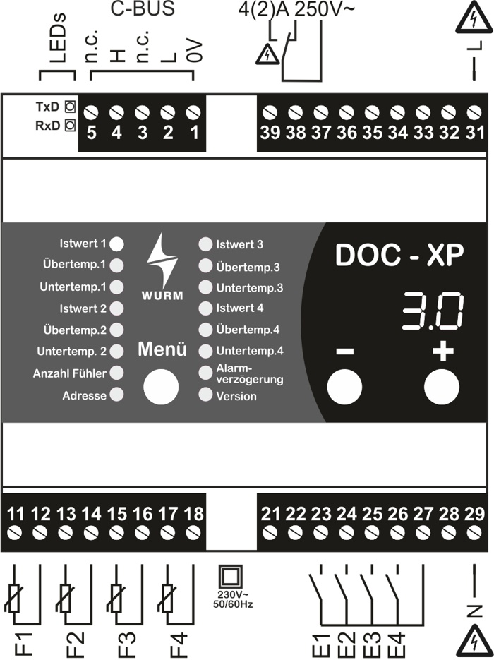 Verbindung zum Wurm-System über Wurm-CAN-Kommunikationsbus (C-BUS) und FRIGODATA XP