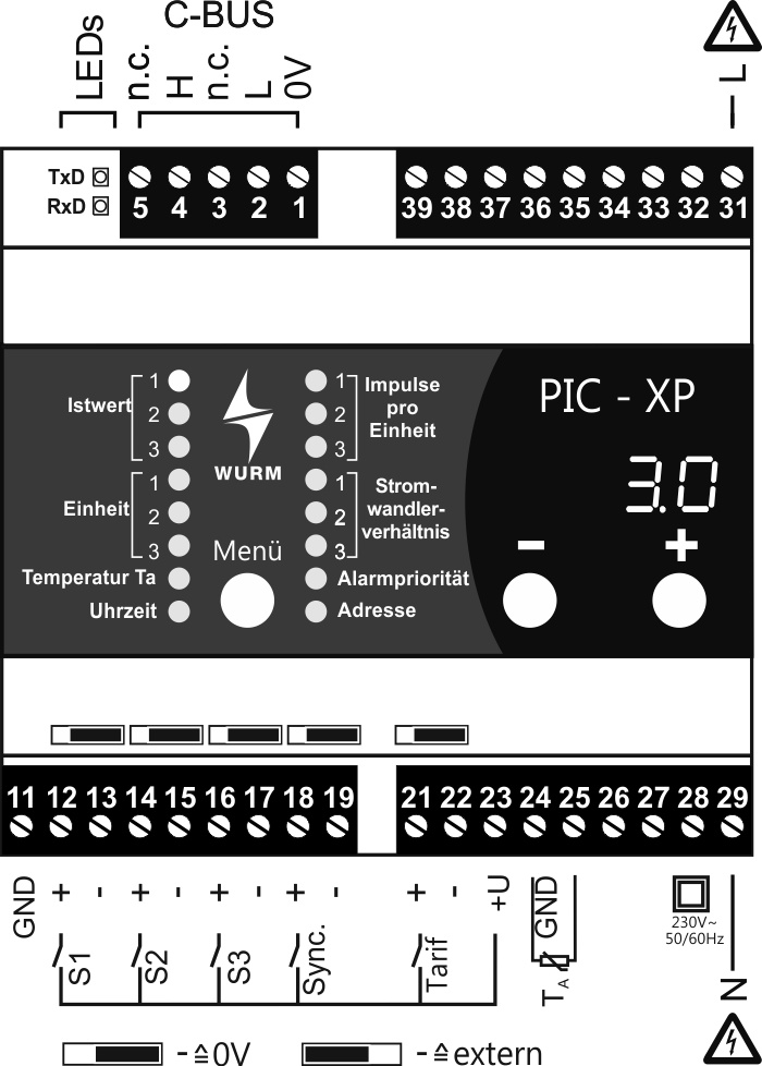 Anpassung an marktübliche Impulsgeber durch einfache Parametrierung, getrennt nach Impulsgeber und Stromwandler