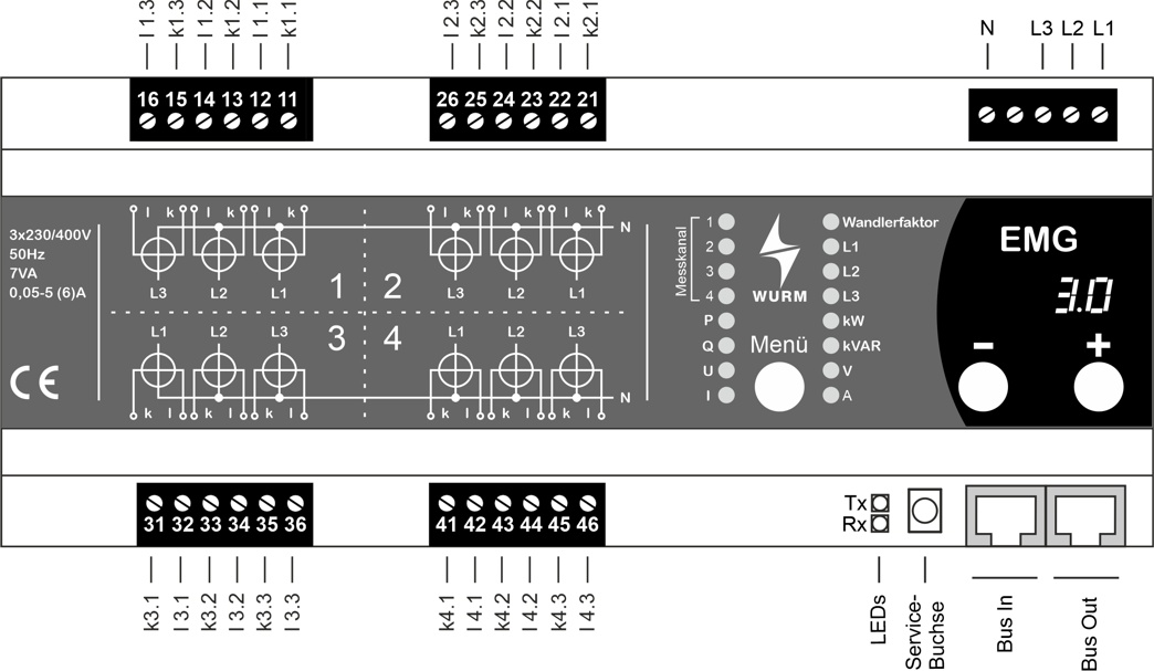 4 unabhängige Messkanäle (3-phasig) über 4 interne Stromzähler
