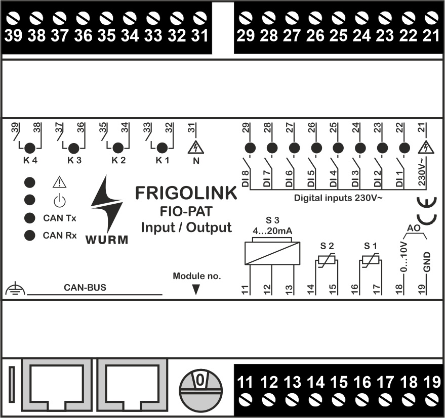 8 Digitaleingänge für z. B. Betriebsmeldungen oder Störmeldungen und Steuerbefehle 230V~