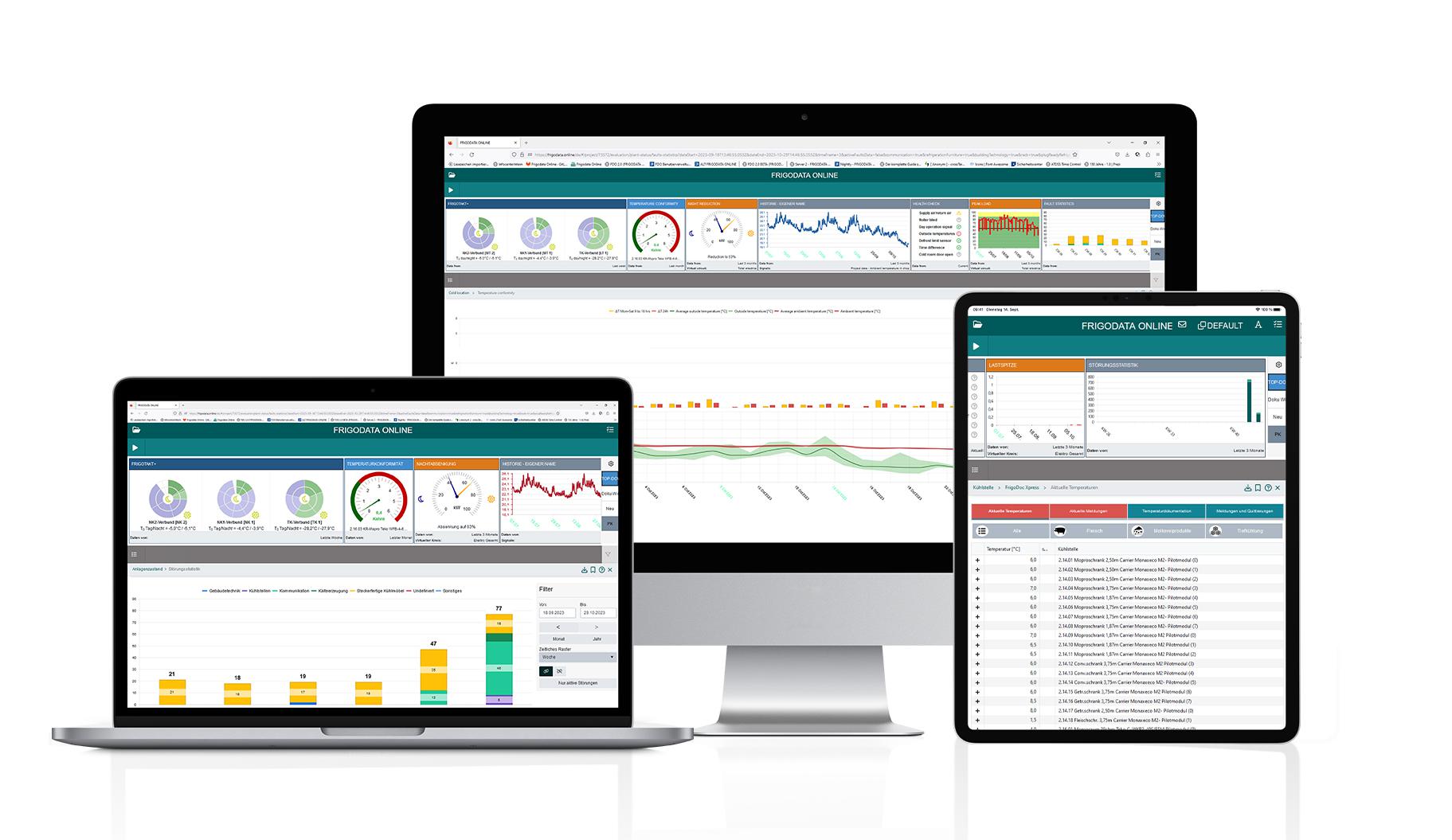 FRIGODATA ONLINE 2.0 ermöglicht eine komfortable Onlineverwaltung Ihrer Anlagen in übersichtlichem Design und mit intuitiver Bedienbarkeit. Widgets im Dashboard visualisieren wesentliche Informationen zu Verbrauch, Störungen, Anlagensicherheit und Anlageneffizienz in komprimierter Form und sind auf den ersten Blick verständlich.