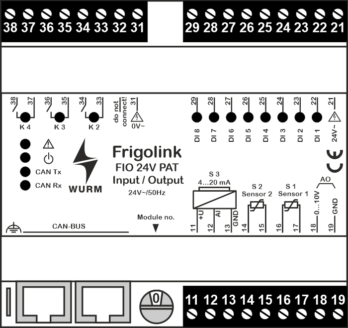 Verbindung zum Hauptmodul über Wurm-CAN-Feldbus (F-BUS)