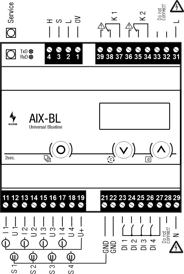 Klartextbezeichnung für jeden Parameter im Display, Sprache wählbar
