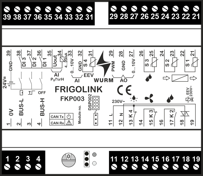 Verbindung zum Hauptmodul über Wurm-CAN-Feldbus (F-BUS)